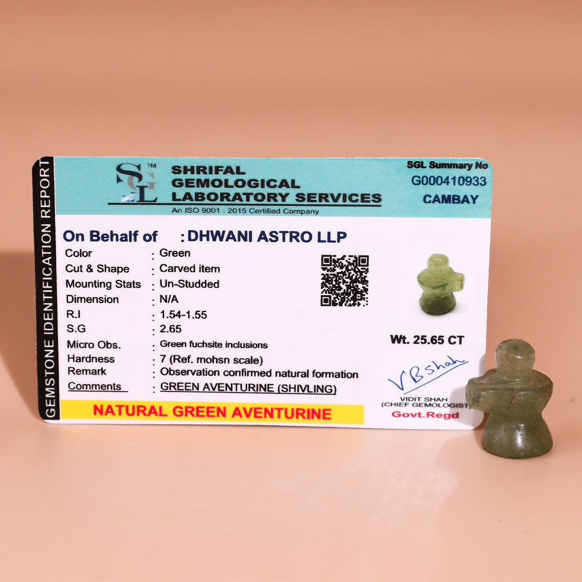 Green Aventurine Shivling Idol - Abhimantrit & Certified