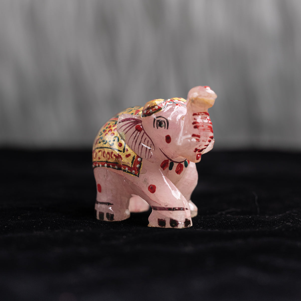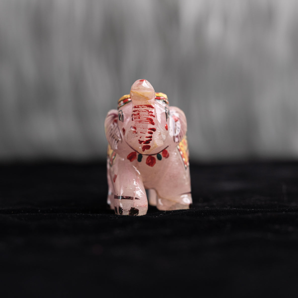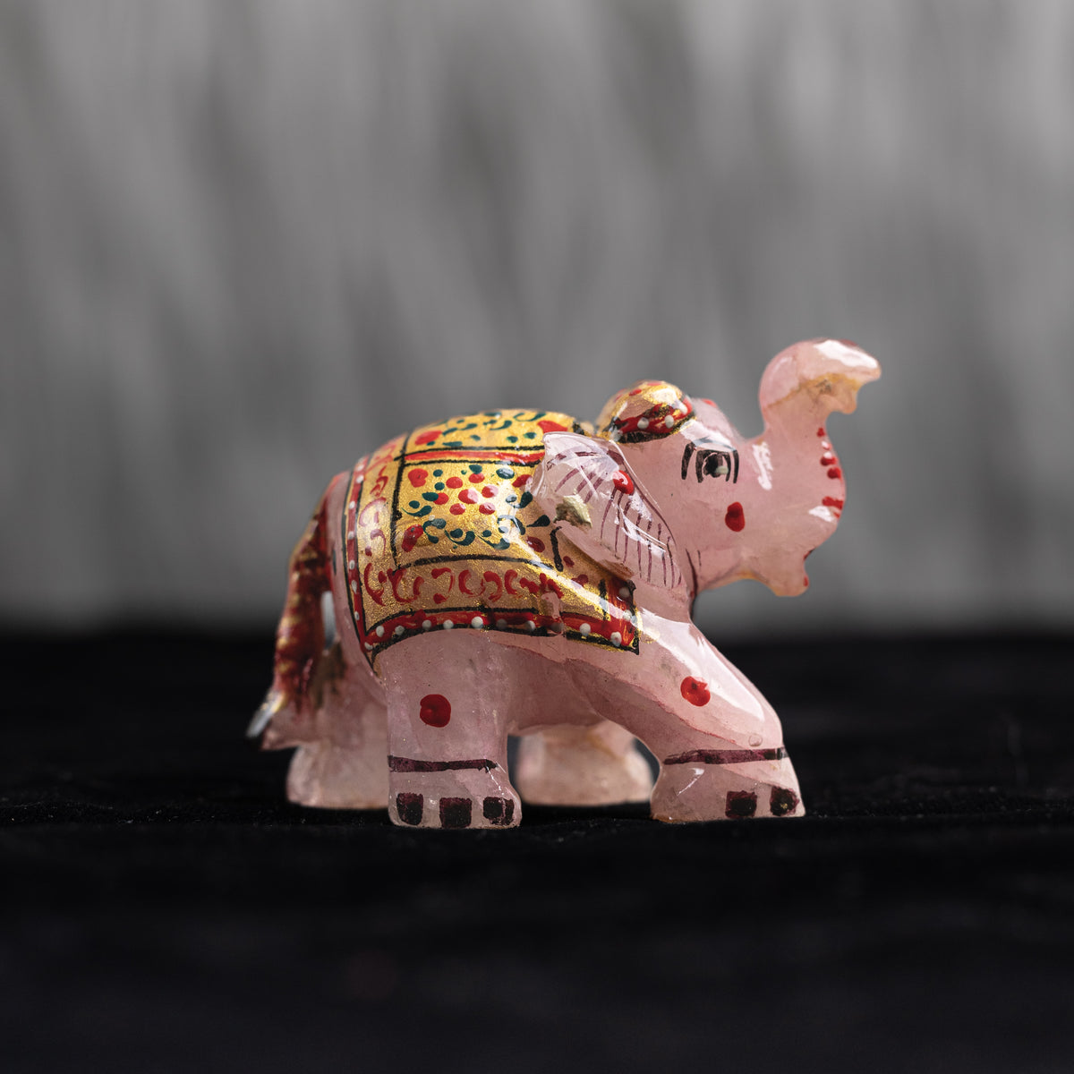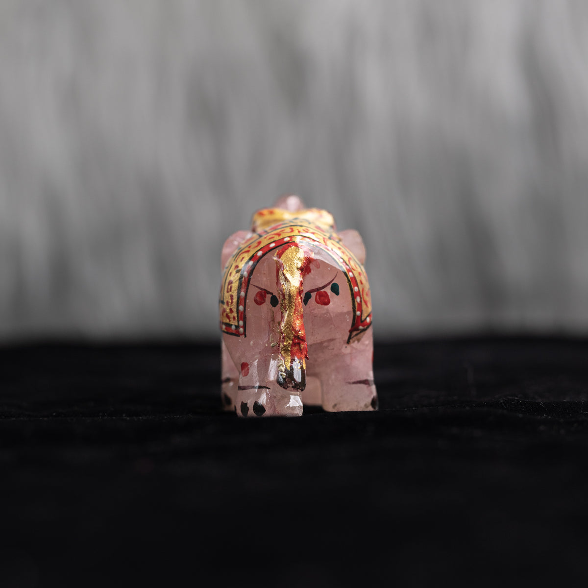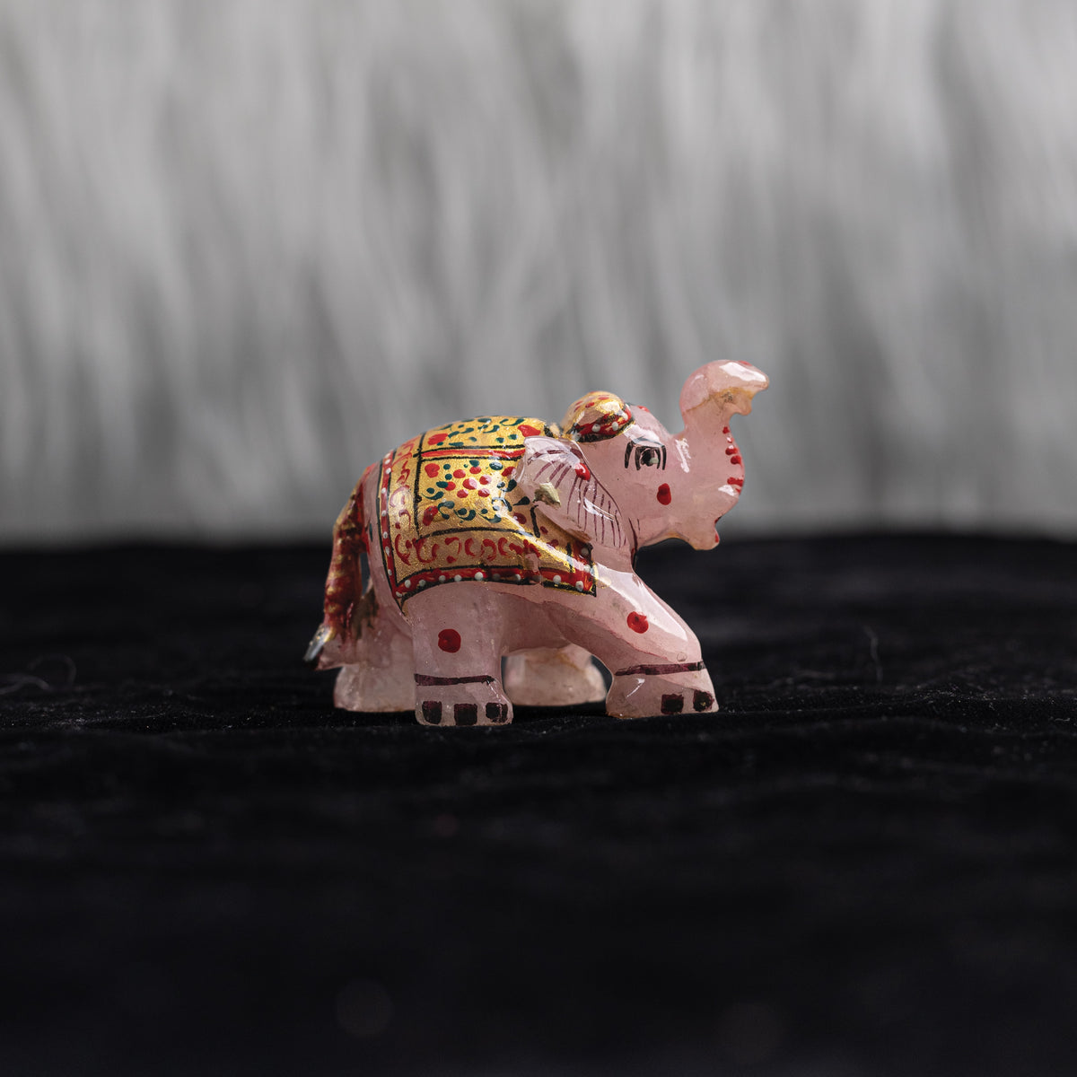 This Rose Quartz Crystal Painted Elephant is a unique piece that combines the beauty of natural rose quartz with intricate painted designs on its body. Symbolizing love, peace, and positivity, this handcrafted elephant adds a vibrant and artistic touch to any space. Its gentle energy promotes emotional healing and creates a soothing atmosphere, making it a meaningful decorative item or a thoughtful gift.