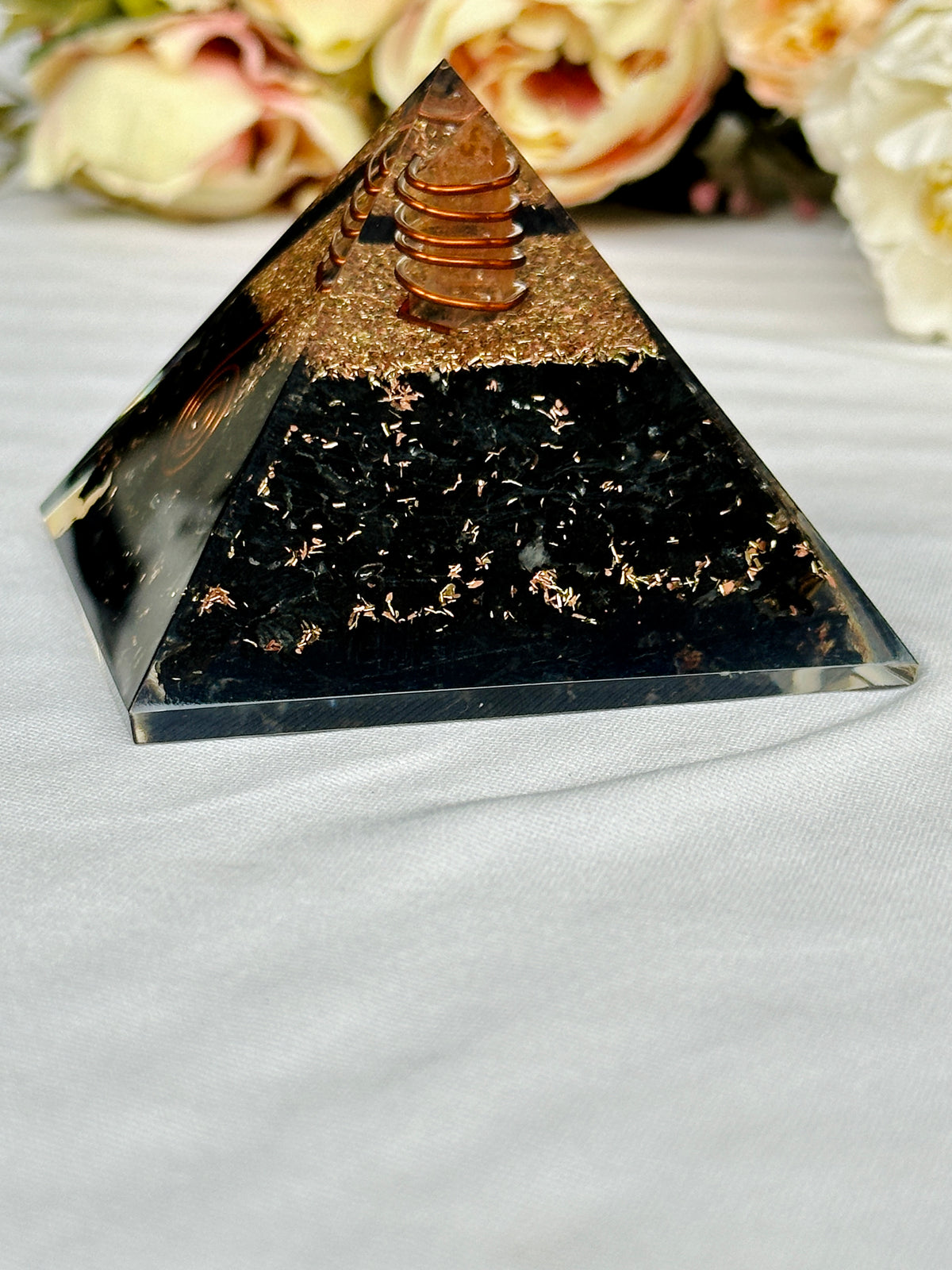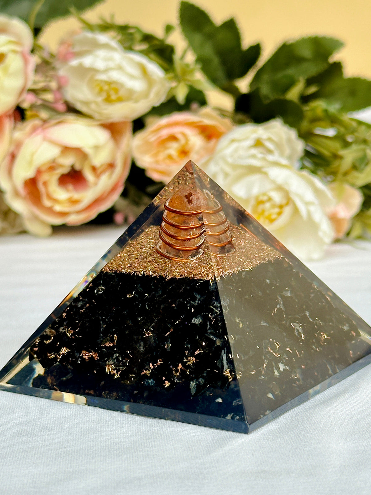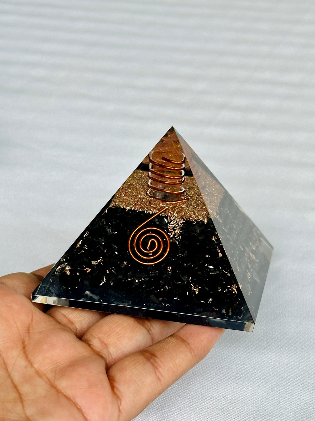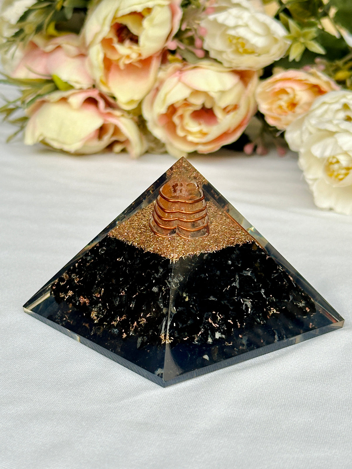 The Tourmaline Pyramid - Abhimantrit is a beautifully crafted gemstone pyramid designed to absorb negative energies and enhance your environment. Energized by skilled pandits, this pyramid promotes positivity and serves as a powerful tool in your spiritual and wellness practices.