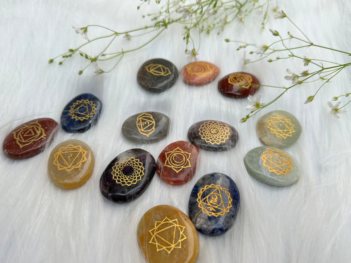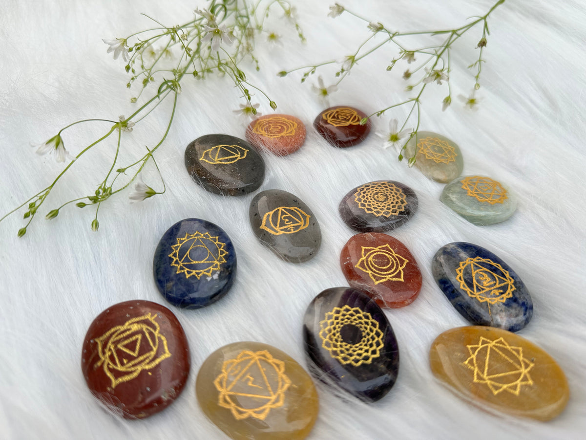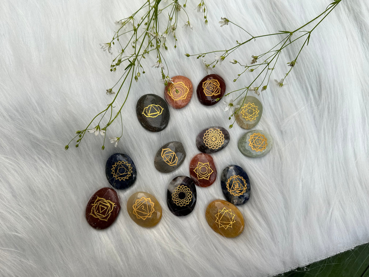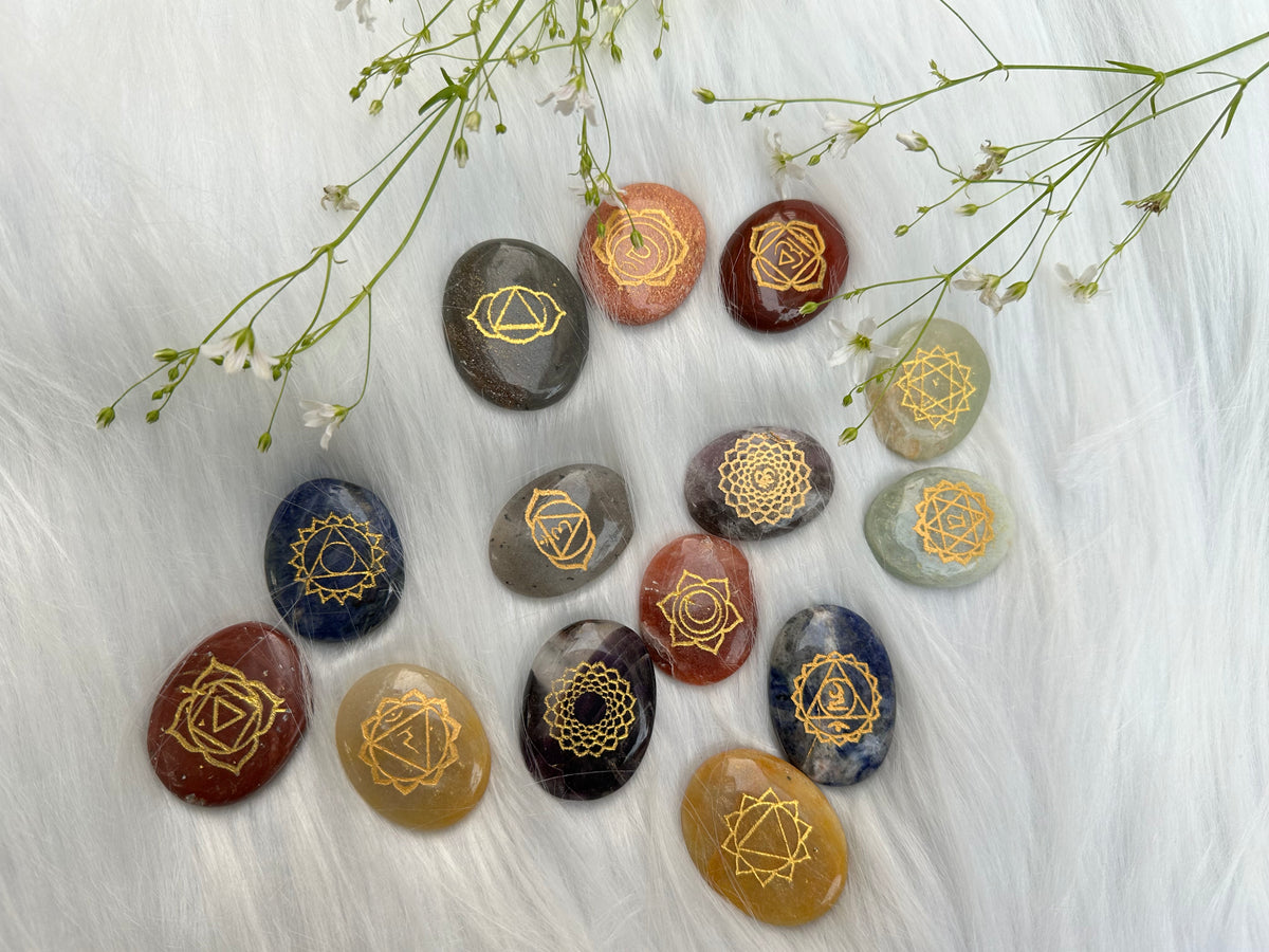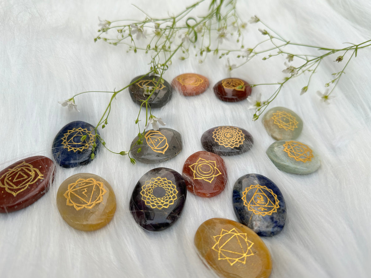 • Chakra Alignment: A coin engraved with stones, which symbolize the chakra points, can smooth out the energy / will serve as a team steerer to help us detect blockages and drive harmony within the body centers.