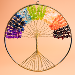 This beautiful wall hanging features a tree adorned with crystals that represent the seven chakras, each chosen for their specific properties to promote well-being and spiritual growth.