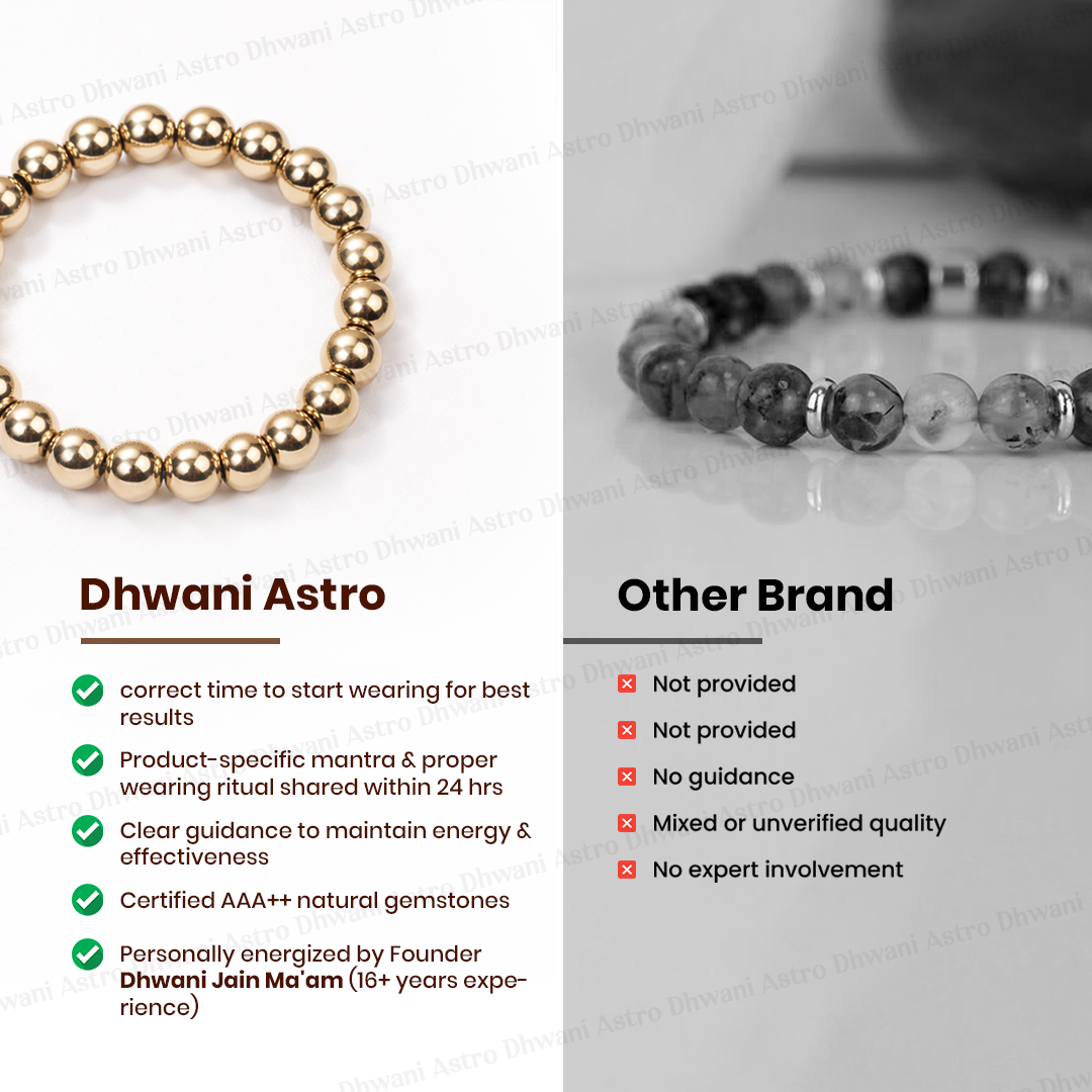 At Dhwani Astro, every product is personally curated, energized, and certified under the guidance of our founder, Dhwani Jain—a renowned healer, gemologist, and astrologer with over 20 years of expertise. Unlike mass-produced alternatives, we ensure genuine procurement and ritual energization, making each item a powerful source of positive energy.