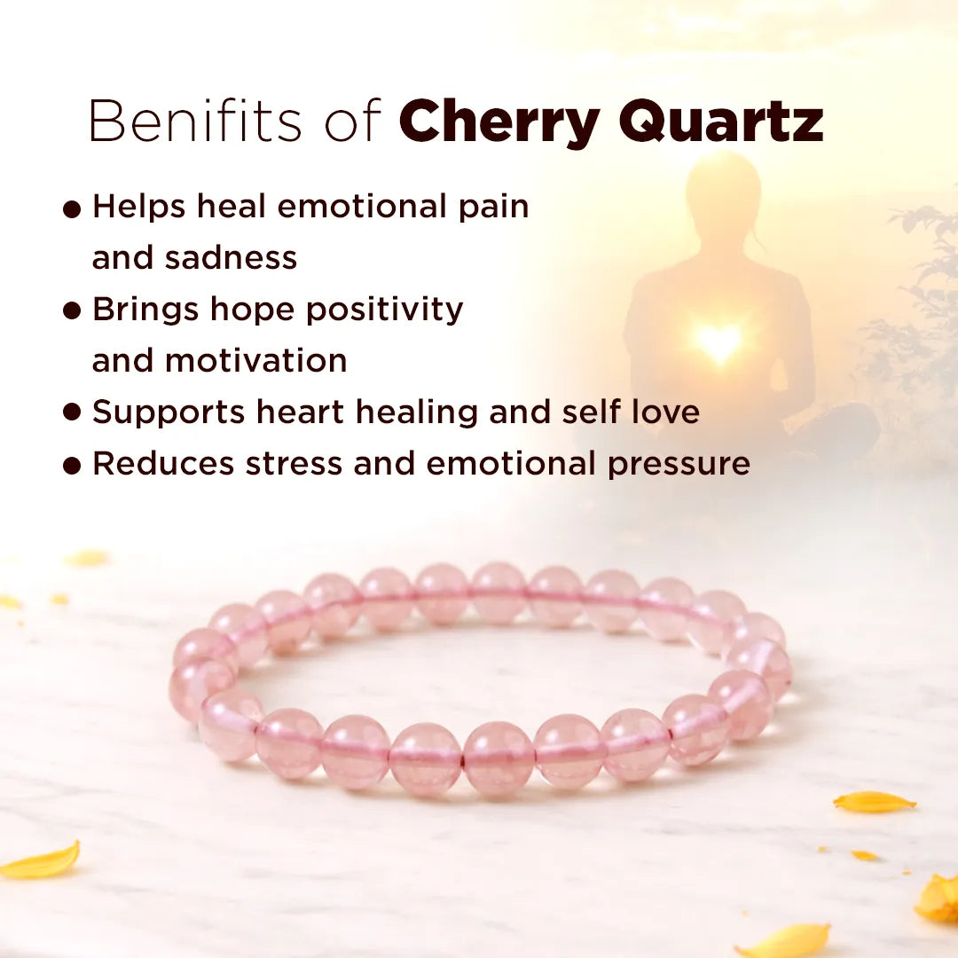 It also supports emotional healing and balance. Cherry Quartz reduces stress, clears negative thoughts, and gives you the strength to handle tough situations with a calm and happy mind. This bracelet is perfect for anyone who wants positivity, emotional support, and a fresh start.