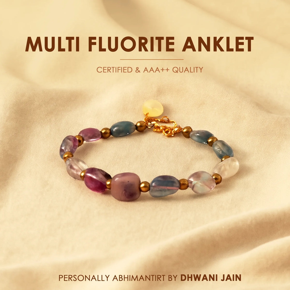 This beautiful Natural Multi Fluorite Anklet - Abhimantrit is a true gemstone of clarity and healing. Known as the Stone of Focus and Peace, Fluorite helps clear the mind, reduce stress, and bring emotional balance. The mix of vibrant colors represents harmony, creativity, and protection — helping you stay calm, confident, and spiritually aligned throughout your day.