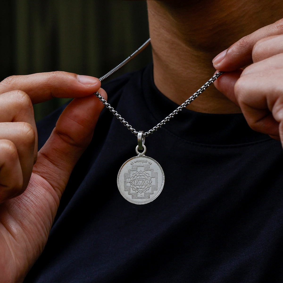 This Pure Silver Baglamukhi Yantra Pendant is traditionally made with devotion to Goddess Baglamukhi, protector, giver of victory and one who dominates your enemies. It is especially helpful in preventing blockages, overcoming negative forces and winning disputes, competitions and challenges.