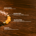 Made with natural stones like Green Aventurine, Yellow Citrine, and Pyrite, the bracelet brings abundance, confidence, and good luck.
