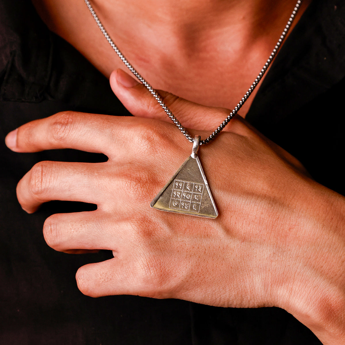 With pure silver, this Yantra is triangular in shape to make its energies powerful to share positivity, mental purification and spiritual upliftment.